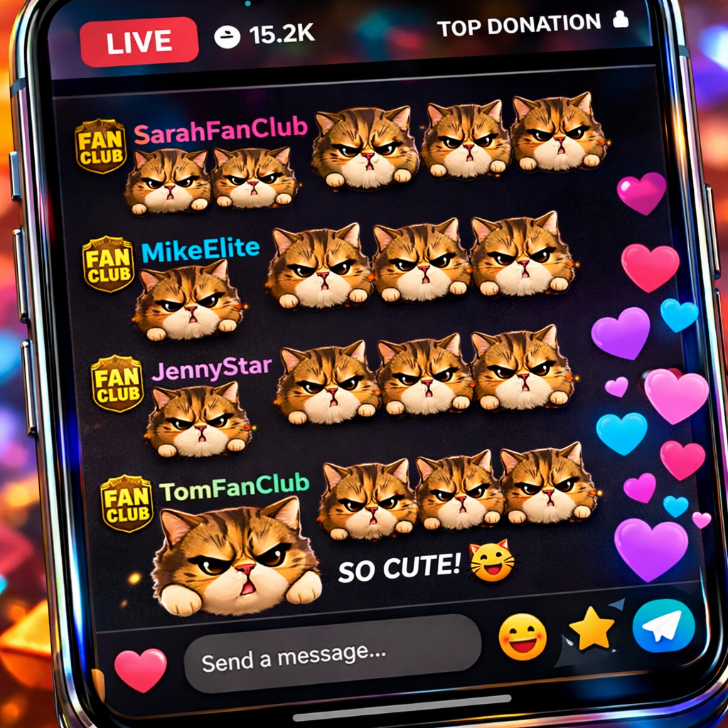 • Özel Emojiler ve Rozetler (Status Symbol): Xena Live, abonelerinize özel tasarladığınız emojileri (Sticker) chat kutusunda kullanma hakkı verir. Bu emojileri sıradan grafikler yapmayın. Örneğin, evinizdeki o çok sevdiğiniz, pofuduk kediniz Güzel Surat’ın komik bir esneme anını veya sinirli bir bakışını kesip (kırpıp) ona özel bir emoji paketi tasarlayın. Bir izleyicinin chatte o sevimli kedi emojisini atabilmesi, diğer (ücretsiz) izleyicilerde inanılmaz bir “Ben de o emojiyi kullanmak istiyorum” arzusu (FOMO) yaratır.