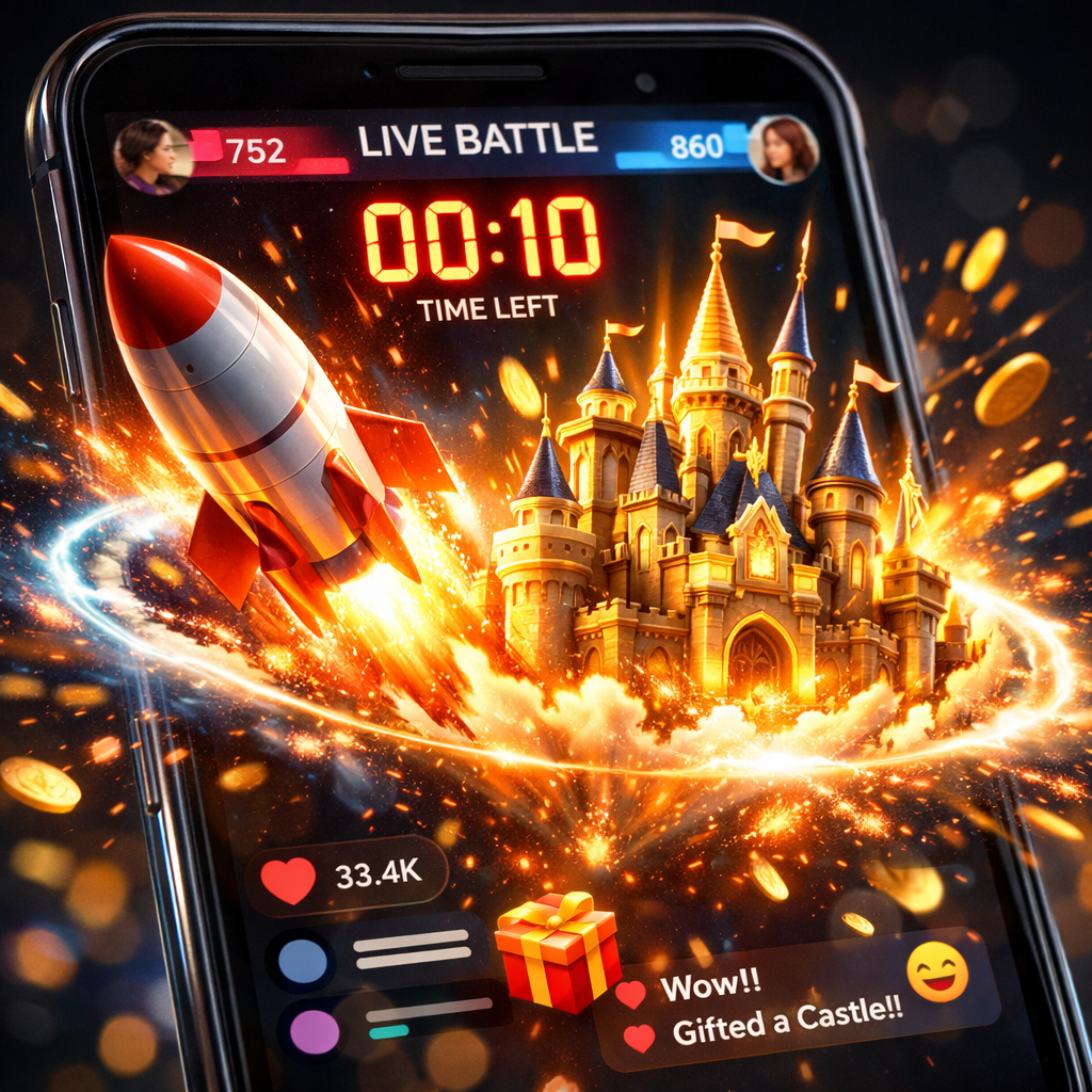 3. Puanlama: İzleyicilerin attığı her bir sanal hediye (gül, araba, şato vb.), o hediyenin jeton değerine göre yayıncının barını doldurur ve ekrandaki puanını artırır. Ekranı ücretsiz çift tıklamak (Beğeni / Like) da ufak puanlar kazandırır.